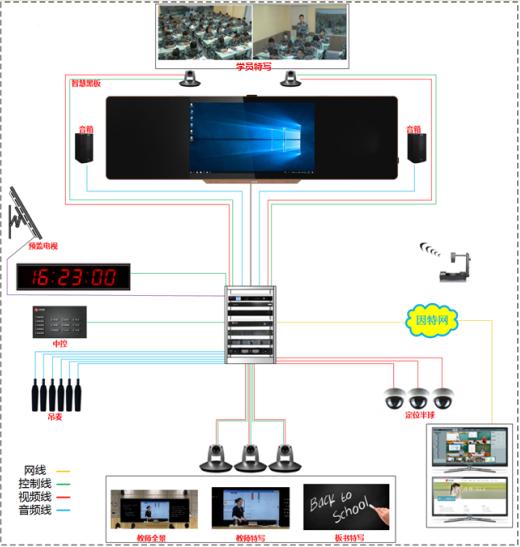 A、通过在教室中安装高精度的温湿度传感器、空气质量传感器等多种信息传感器,以及视频、音频采集及处理器、交互平板等设备,运用物联网技术,实时采集需要监控、连接、互动的物体或过程等信息,与互联网结合,实现智慧教学、智能环境调节、智能录播、智慧课堂等为一体的智慧化教室建设;
